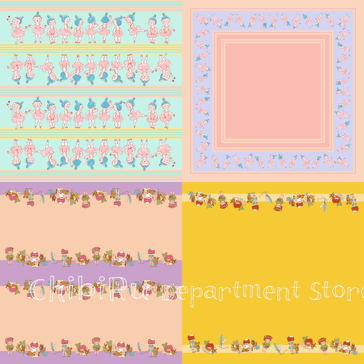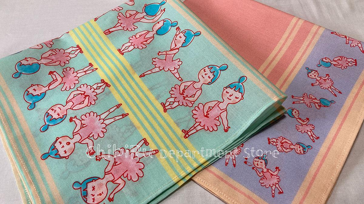 ChibiRu Department Store トップページのイラストと、LINE スタンプ「うごくチカビディーズ!」の原画でテキスタイルをつくり、ハンカチに仕立てました。