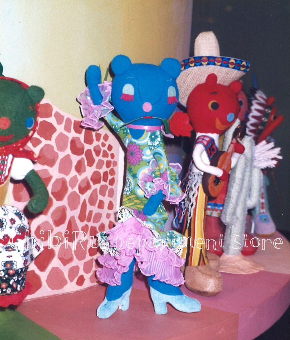 1999年7月に行われた箱根テディベアミュージアムの展示「世界旅行」に出品した世界の国・民族・衣装・ダンスのうちのひとつです。タイトルはわすれましたが、何冊もで構成された、世界各地の文化を紹介する百科事典を参考に作りました。